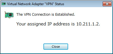 If a VPN connection will be established successfully, the above message will appear. This windows will disappear automatically in 5 seconds. If you failed to connect specified VPN server, try another.